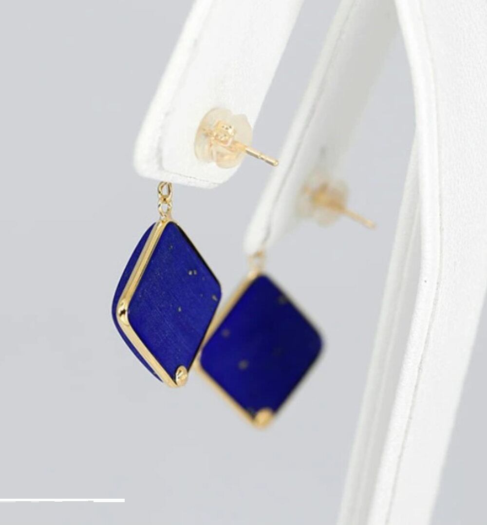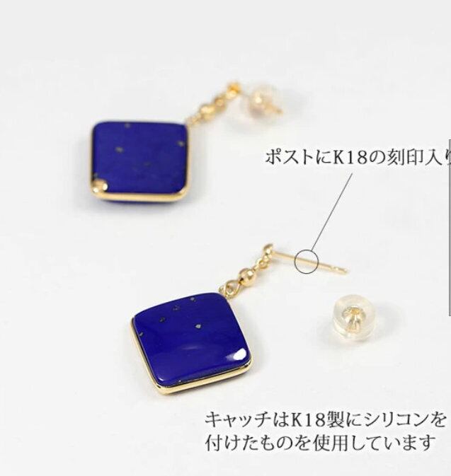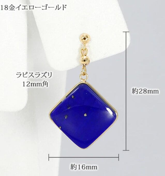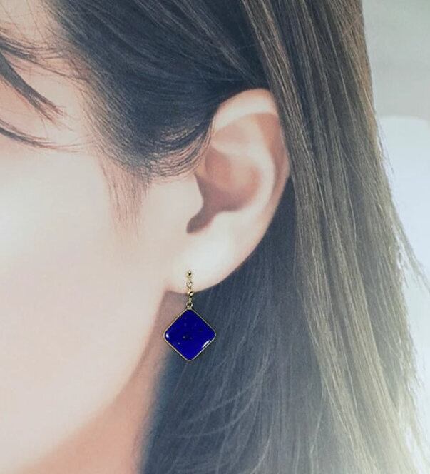 "1辺12ミリの正方形のラピスラズリを下げて揺れるデザインしたポストピアスです。