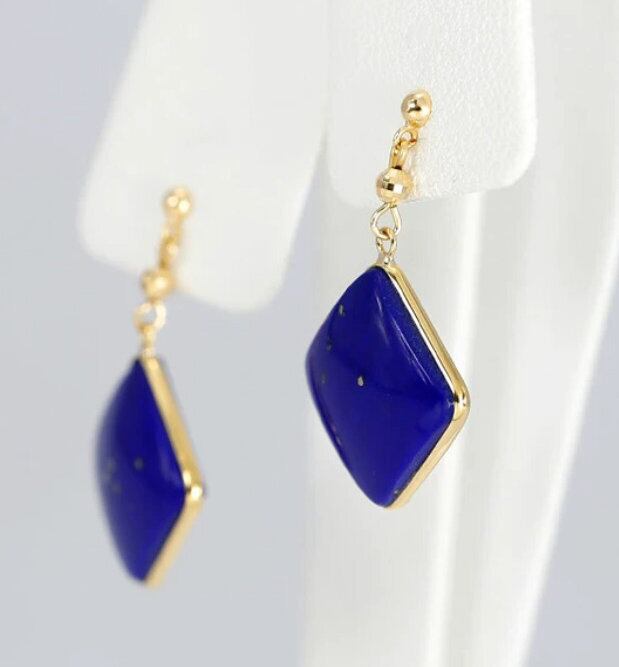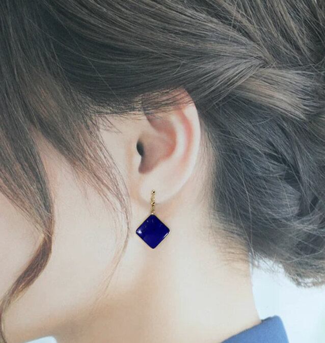存在感のある大きさですが、プレートのラピスラズリを使用しているので重さも両耳で約3gと軽く、着け心地も良いです。