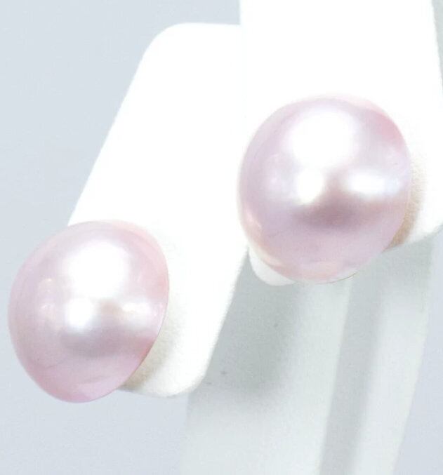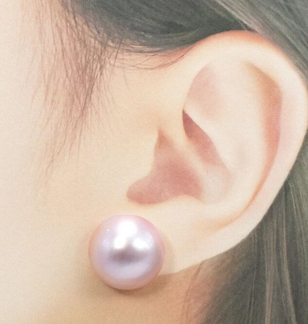 その貴重なマベパールをシンプルなピアスにしました。大人可愛いパールピンクはファッションのポイントとして引き立ちます。