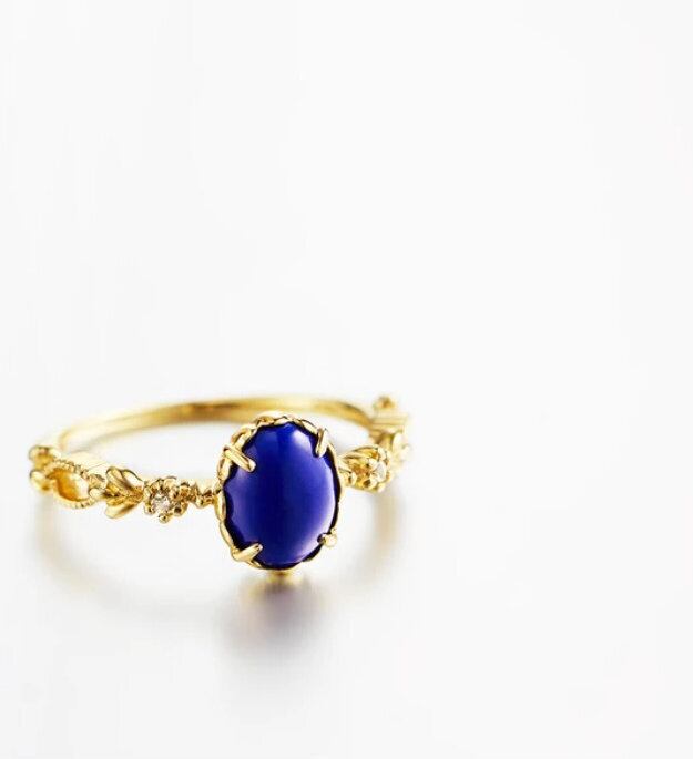 繊細な細めのリングはトップのラピスラズリをより引き立ててくれるようなデザインです。