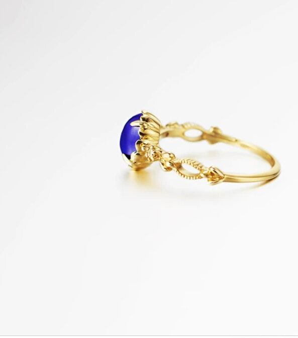 "瑠璃色と18金のコントラストが美しいリングです。