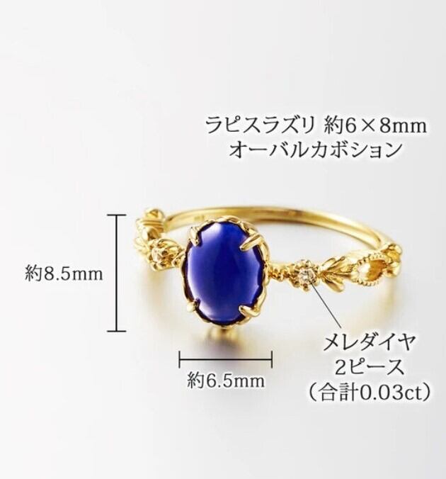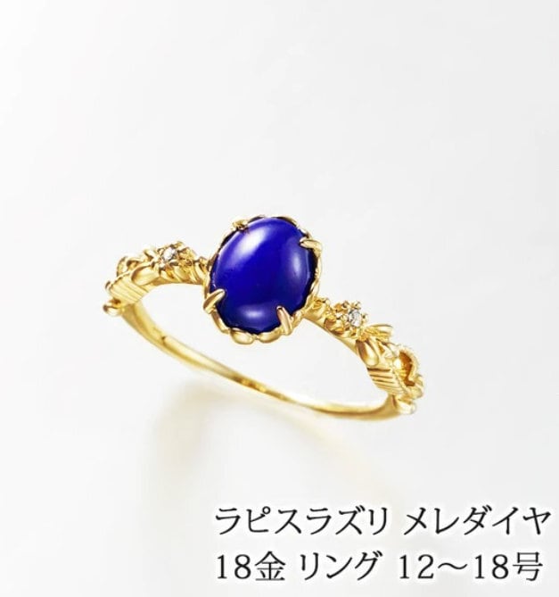 18金 天然石 ラピスラズリ ダイヤモンド リング 日本製[made in Japan]