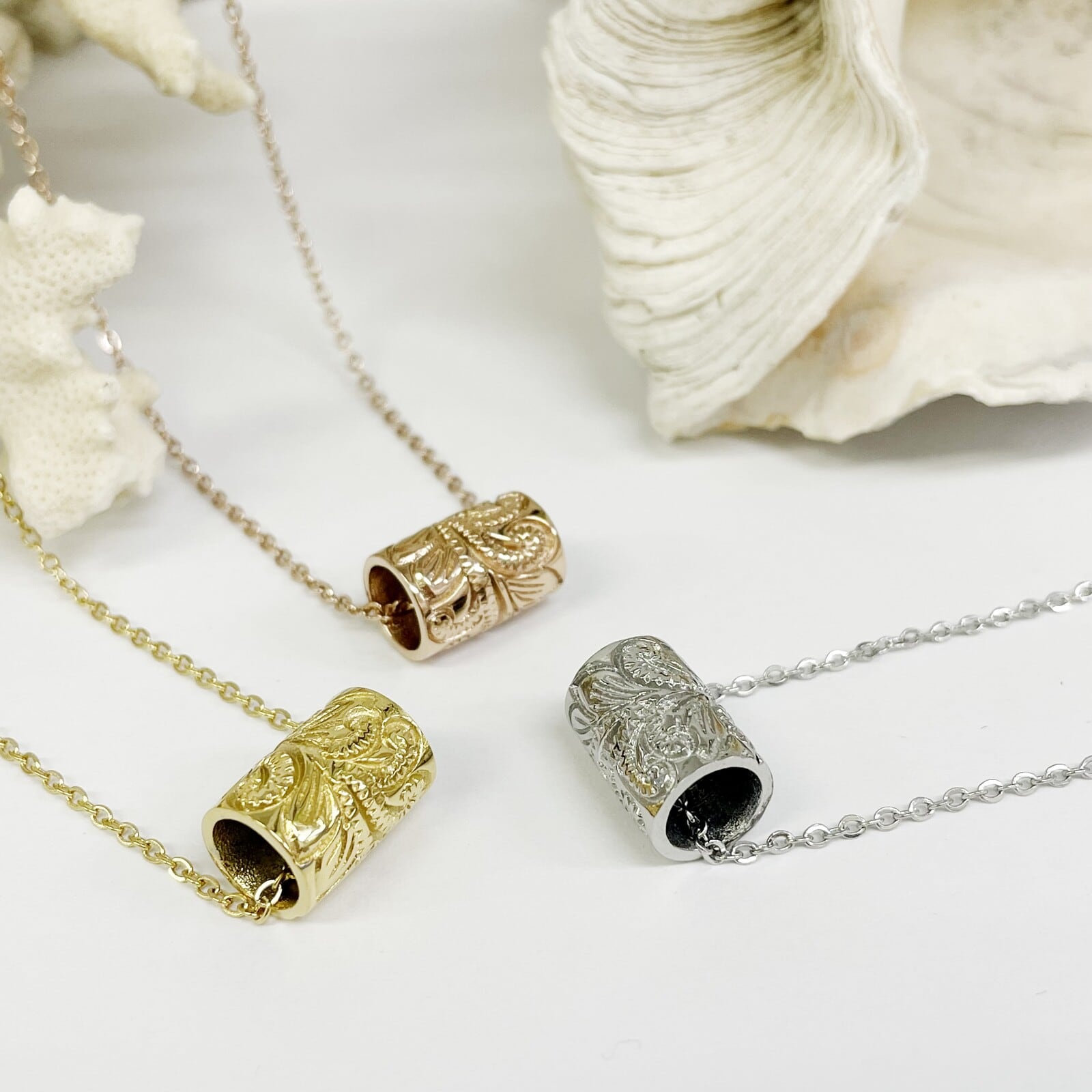 オールジェンダーを意識したデザインを展開しています。サージカルステンレスにIPメッキを施しているため、傷がつきにくく変色もしづらいです。