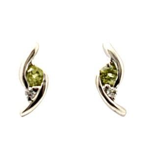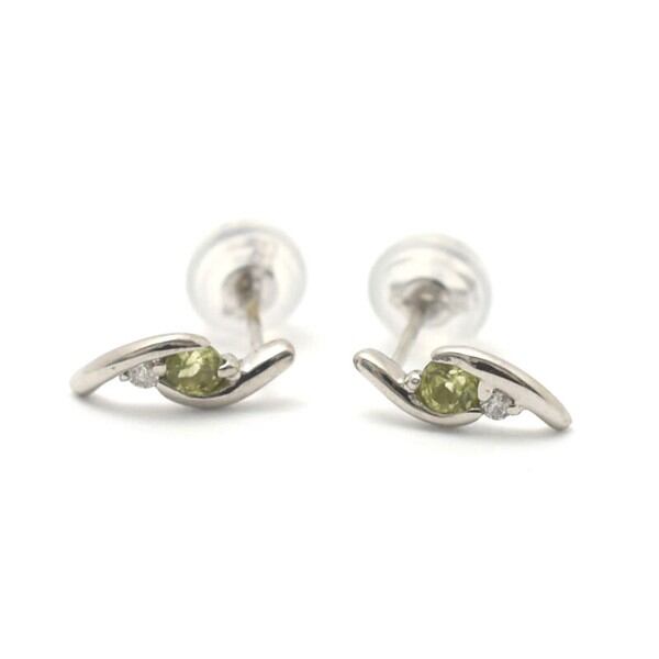 K10ホワイトゴールドの抱き合わせ枠にペリドットとダイヤをセットしたピアス