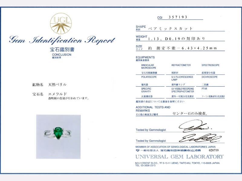 ■石名: エメラルド 1.13ct / ダイヤモンド 0.19ct